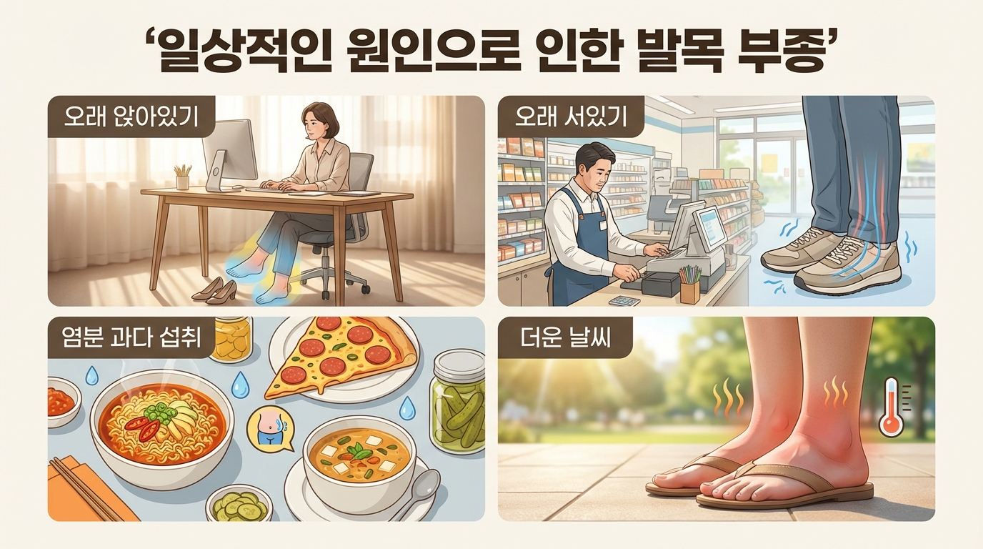 아침에 신발을 신기 힘들 정도로 발목이 퉁퉁 부어있다면? 삐끗한 적도 없는데 왜자꾸 발목이 붓는지 궁금하신가요? 발목이 붓는 이유는 생각보다 다양해요. 단순한 피로부터 심각한 질환까지, 40대 주부의 경험담과 함께 발목이 붓는 원인을 구체적으로 알아보고, 집에서 실천할 수 있는 완화 방법까지 정리해드릴게요. 발목 부종으로 고생하시는 분들은 꼭 읽어보세요.